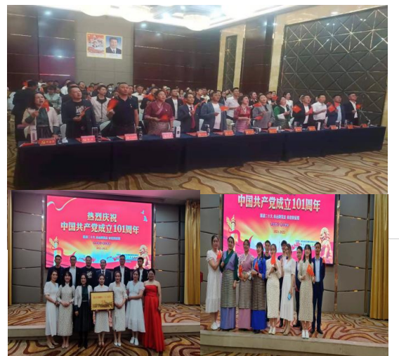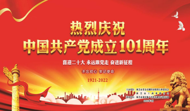 一百零一年前的七月一个伟大的政党中国共产党庄严成立了,一面火红的旗帜冉冉升起,2022年7月1日林芝市非公有制经济组织行业委员会,林芝市工商业联合会,林芝市嘉龙房地产开发有限公司党支部联建庆七一文艺汇演。